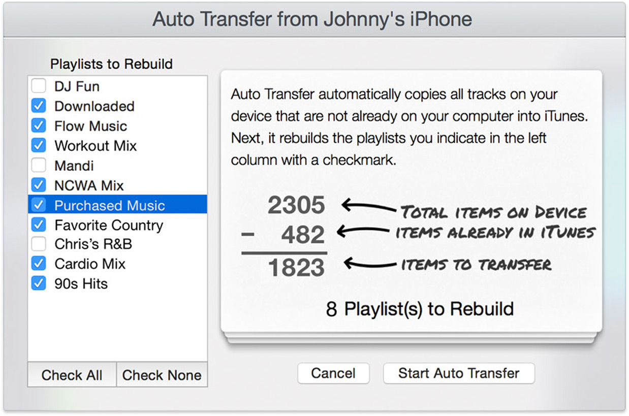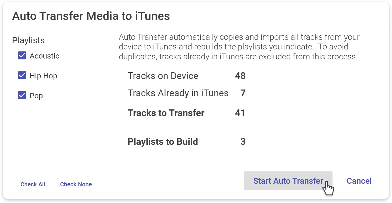 - Review playlist selections and click Start Auto Transfer.