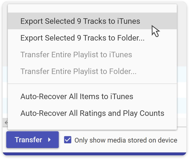 You can move individual songs, entire playlists, or quickly recover everything using Auto Transfer.