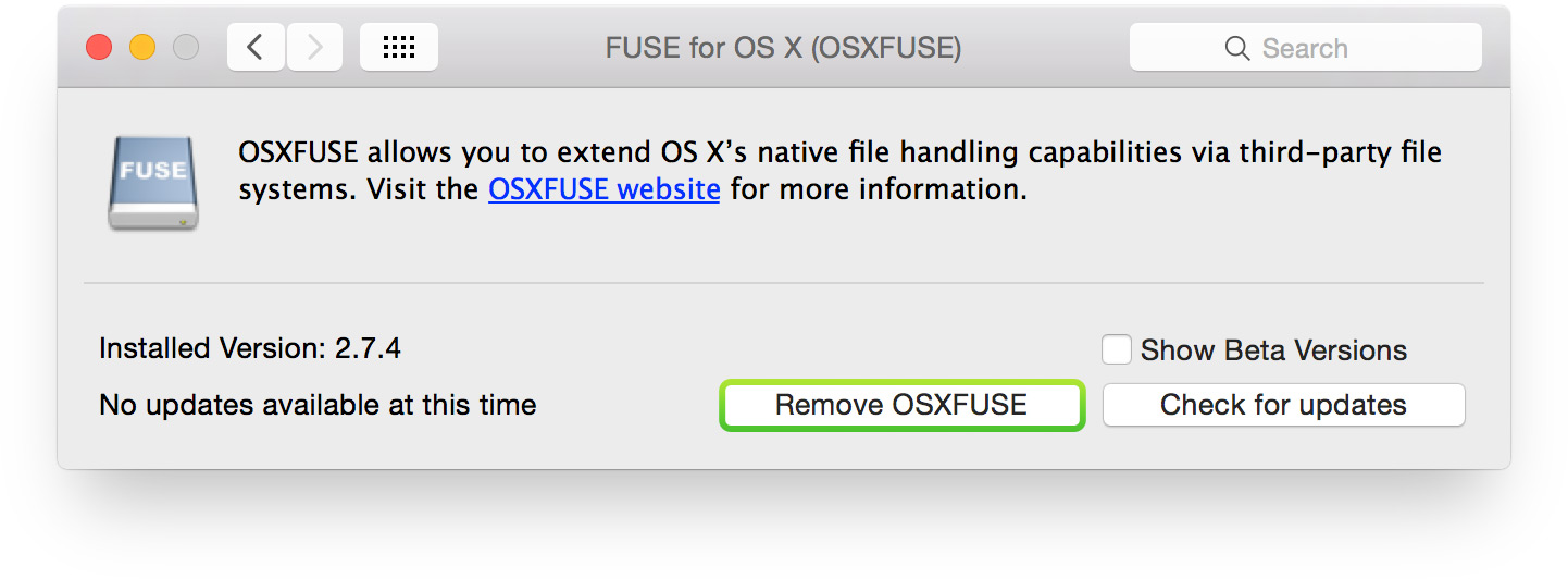 Uninstalling OSXFUSE (Optional)